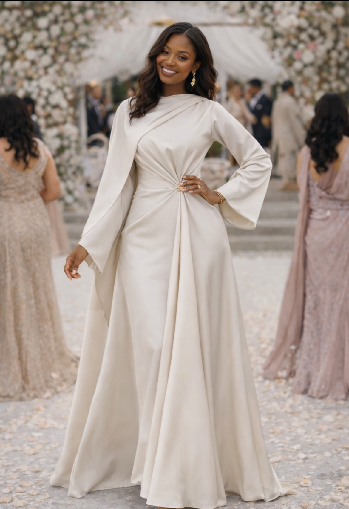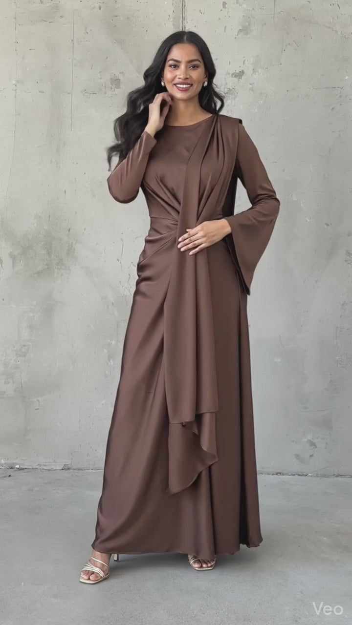 Its flowing silhouette and full-length design exude modest sophistication, making it ideal for weddings, bridal and baby showers, graduations, and elevated evening occasions. Effortlessly refined and endlessly versatile, this gown is where modern modesty meets timeless elegance.